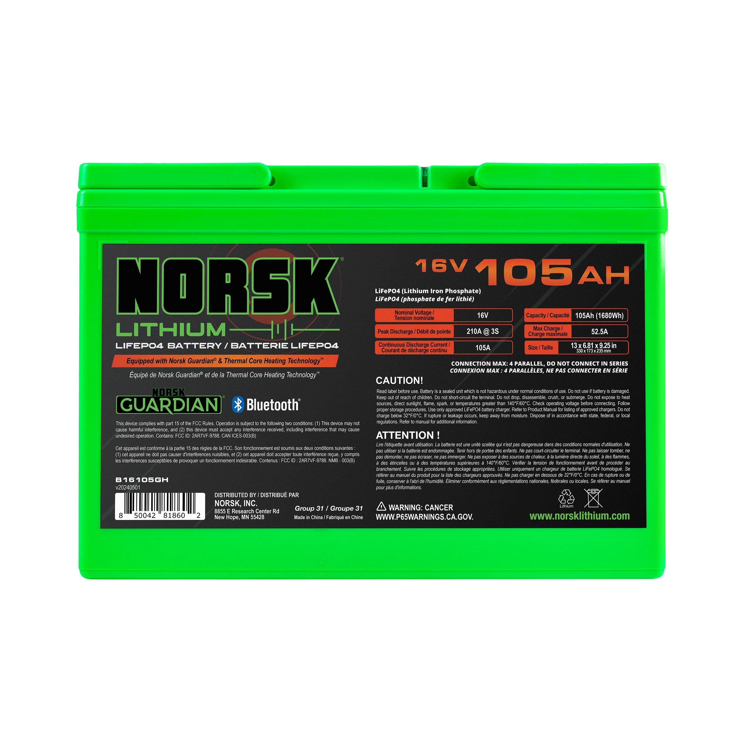 16V 105AH HEATED LIFEPO4 LITHIUM DEEP CYCLE BATTERY – NORSK LITHIUM