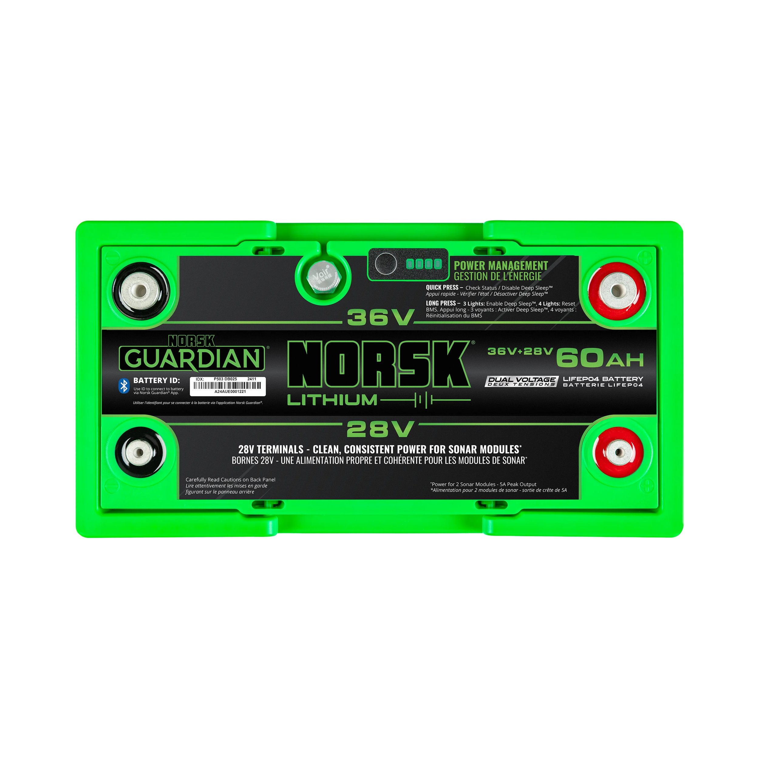 Elevate your trolling motor experience with the Norsk Lithium 36V + 28V 60AH Dual Voltage LiFePO4 Lithium Battery. Designed with anglers in mind, this advanced battery delivers dual voltage functionality in a single, compact unit. Featuring separate terminals to meet different power needs, the 28V terminal ensures your sonar module runs cooler and longer than a 12V power source, optimizing the performance of your forward-facing sonar.